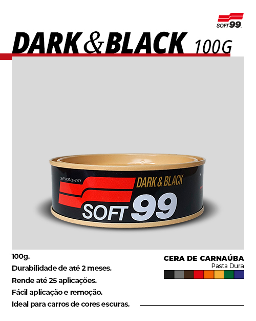 Essa é a versão 100g, edição 2024, da clássica Dark & Black, a cera de carnaúba automotiva mais vendida do mundo.