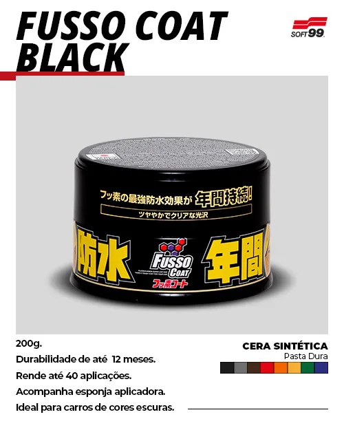 A cera Fusso Coat Black é um selante em forma de cera com ultra repelência e longa durabilidade (até 12 meses).