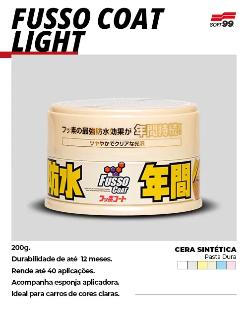 Uma das ceras mais premiadas no mundo, a FUSSO COAT LIGHT garante proteção ao veículo por 12 meses.