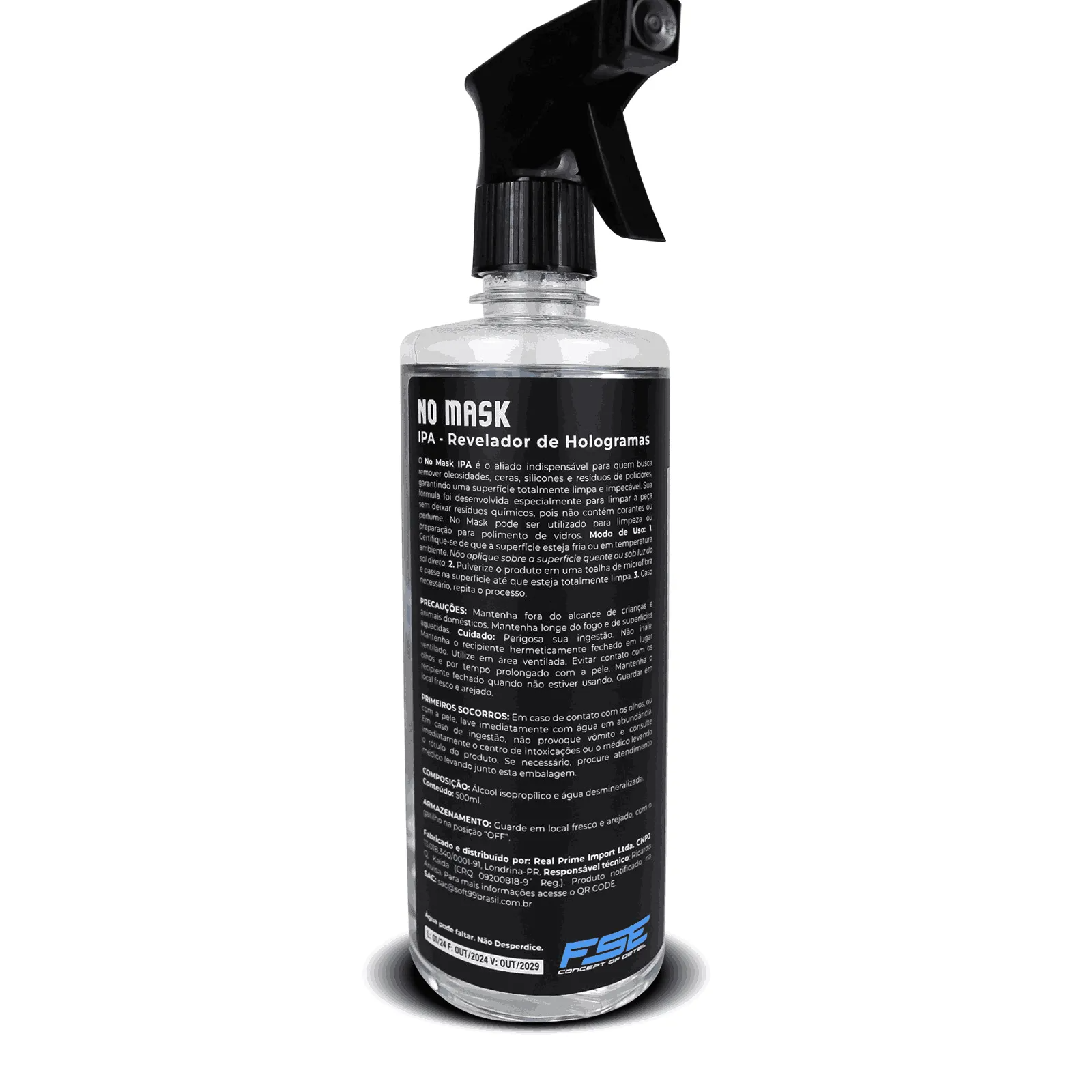 O No Mask, da FSE Concepet Of Detail, é um álcool isopropílico de alta pureza, projetado especificamente para profissionais e entusiastas que exigem um nível superior de limpeza.